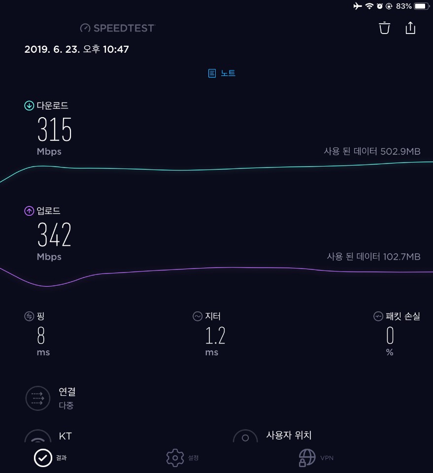 미크로틱 라우터를 들인 이후로 간간히 아이패드 미니4에서 speedtest.net 어플을 통해