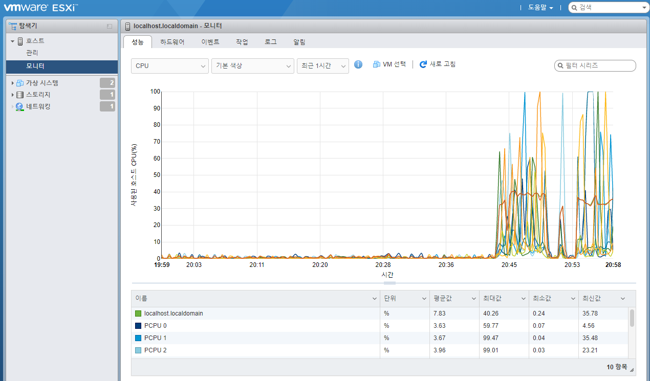 ESXi 최근 작업 윈도우와 CMD에서 진행상황을 확인해 볼 수 있습니다.