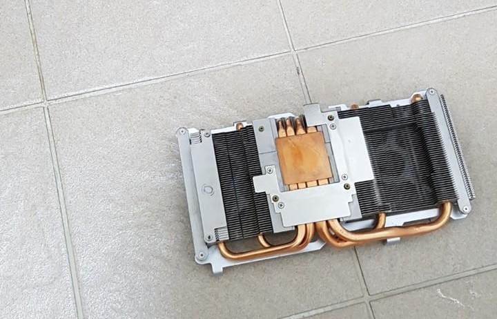 쿨링팬을 분해하고 써멀패드를 떼어버린 방열판은 전자부품이 없는 구리 + 알루미늄이니