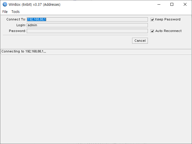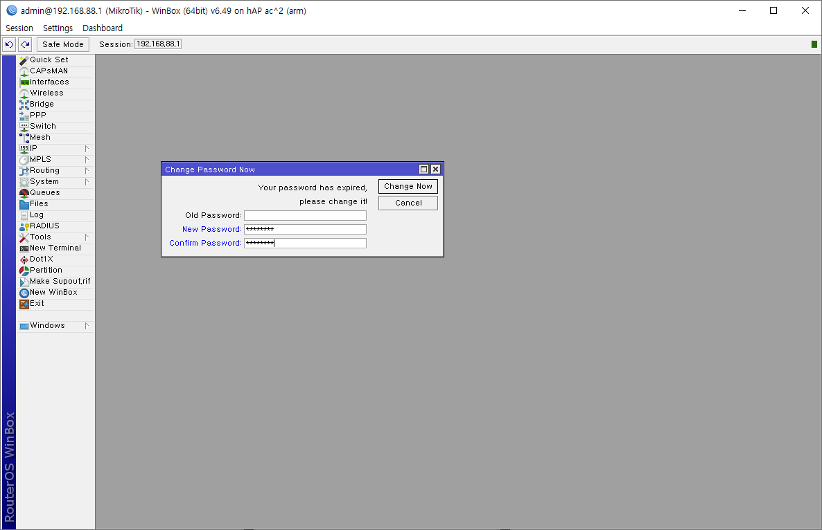 winbox는 처음 로그인 화면으로 돌아가 재접속을 시도합니다.