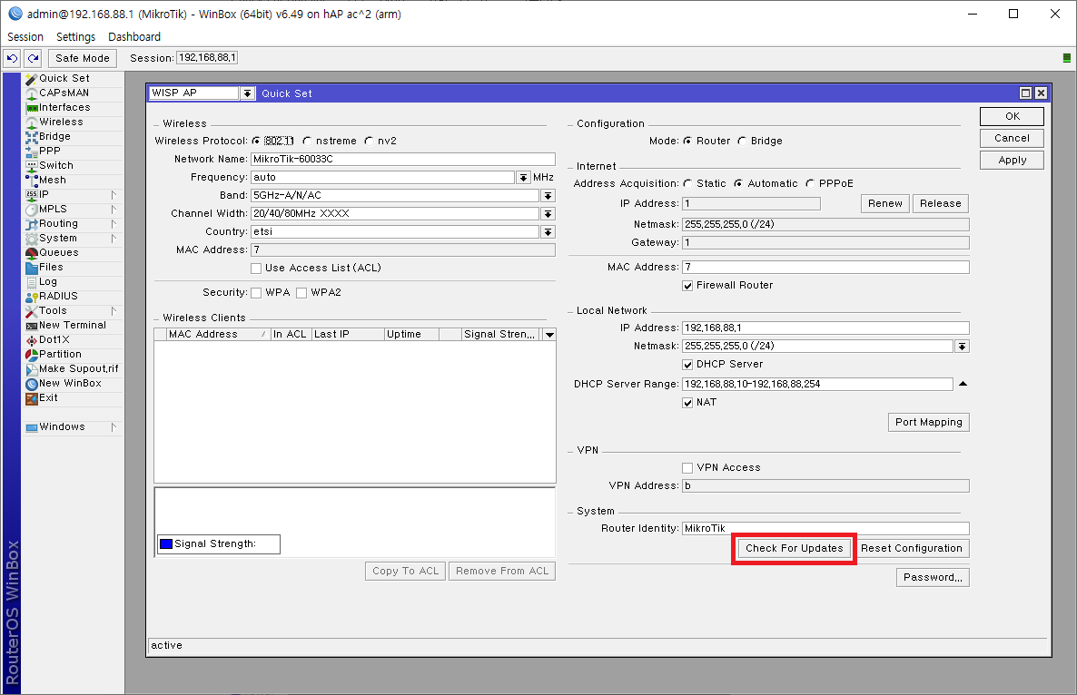 Quick Set 우측 하단에 있는 Check For Updates를 버튼을 눌러 업데이트를 확인 및 설치할 수 있습니다.