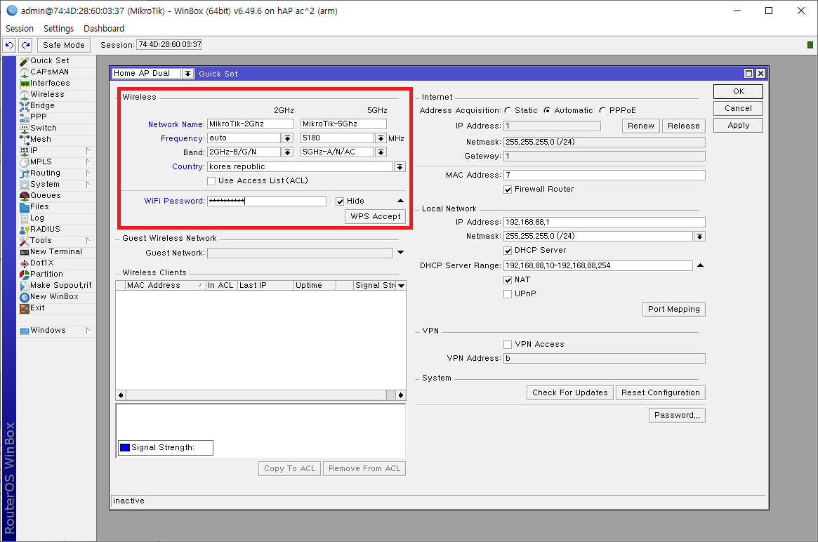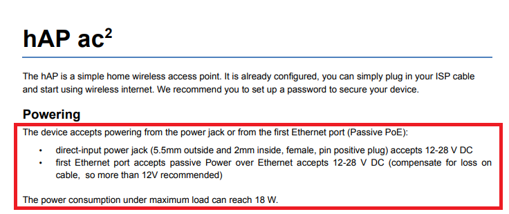 hAP ac^2는 퀵 가이드 문서에 아래와 같이 설명하고 있습니다.