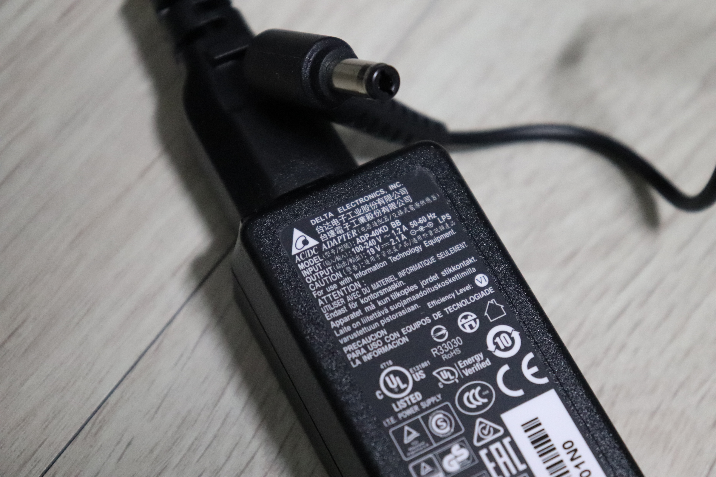 일반적인 원통형 팁 모양에 외경 5.5mm / 내경 2.1mm, 19V 2.1A 출력을 내는 어댑터입니다.